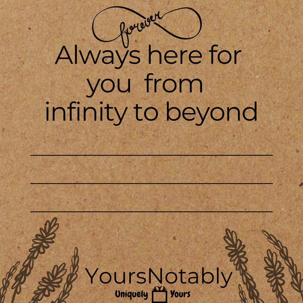 Celebrate your unbreakable bond with our Infinity Micro Paracord Bracelets, a matching set perfect for sharing with someone special. These thin, vibrant bracelets feature a playful combination of soft pink and colorful rainbow cords, adding a pop of personality to your everyday style. Each bracelet comes with a heartfelt note card that reads: "Always here for you, from infinity to beyond." The card includes three blank lines for you to add a personal message, making your gift uniquely yours. Whether for a birthday, a heartfelt thank-you, or just because, this set is an ideal way to show you care. The bracelets are presented individually in brown envelopes, creating a simple yet thoughtful gifting experience. Bright, bold, and full of meaning—this set is the perfect way to celebrate the infinite connections in your life.