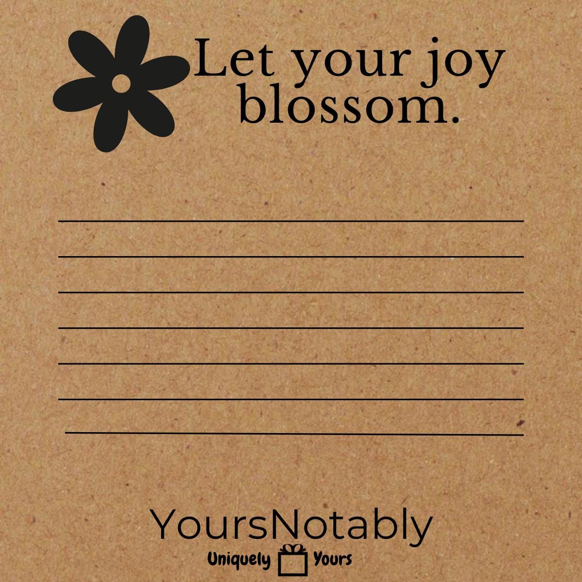Inspirational Note Card: Includes a card that reads "Let your joy blossom," perfect for gifting.