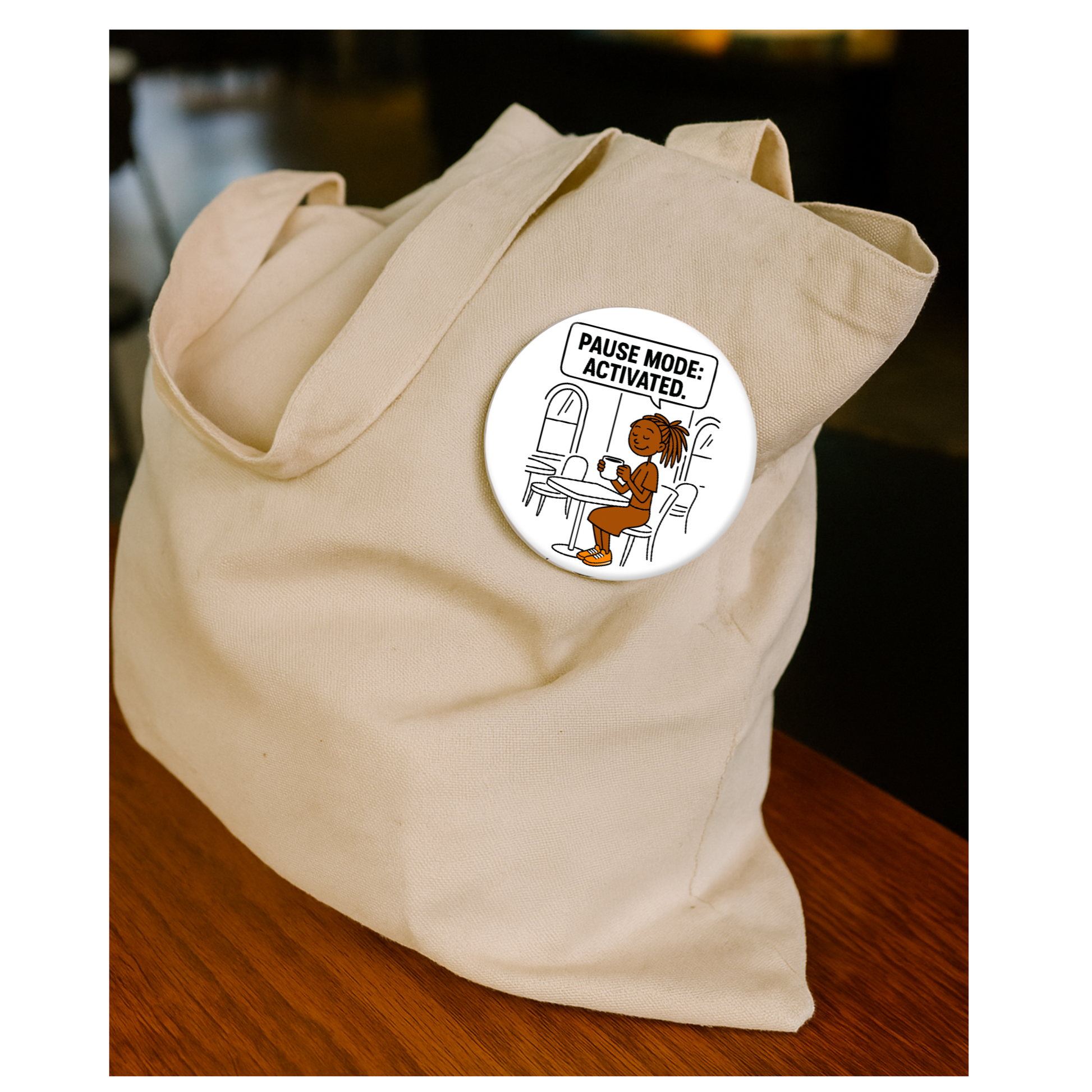 Take a breather and embrace the calm with this 3-inch Pause Mode: Activated button or magnet, part of the YoursNotably Rest Culture™ Collection. Featuring our signature Rest Culture Girl enjoying a peaceful coffee moment, this design celebrates the art of slowing down.
