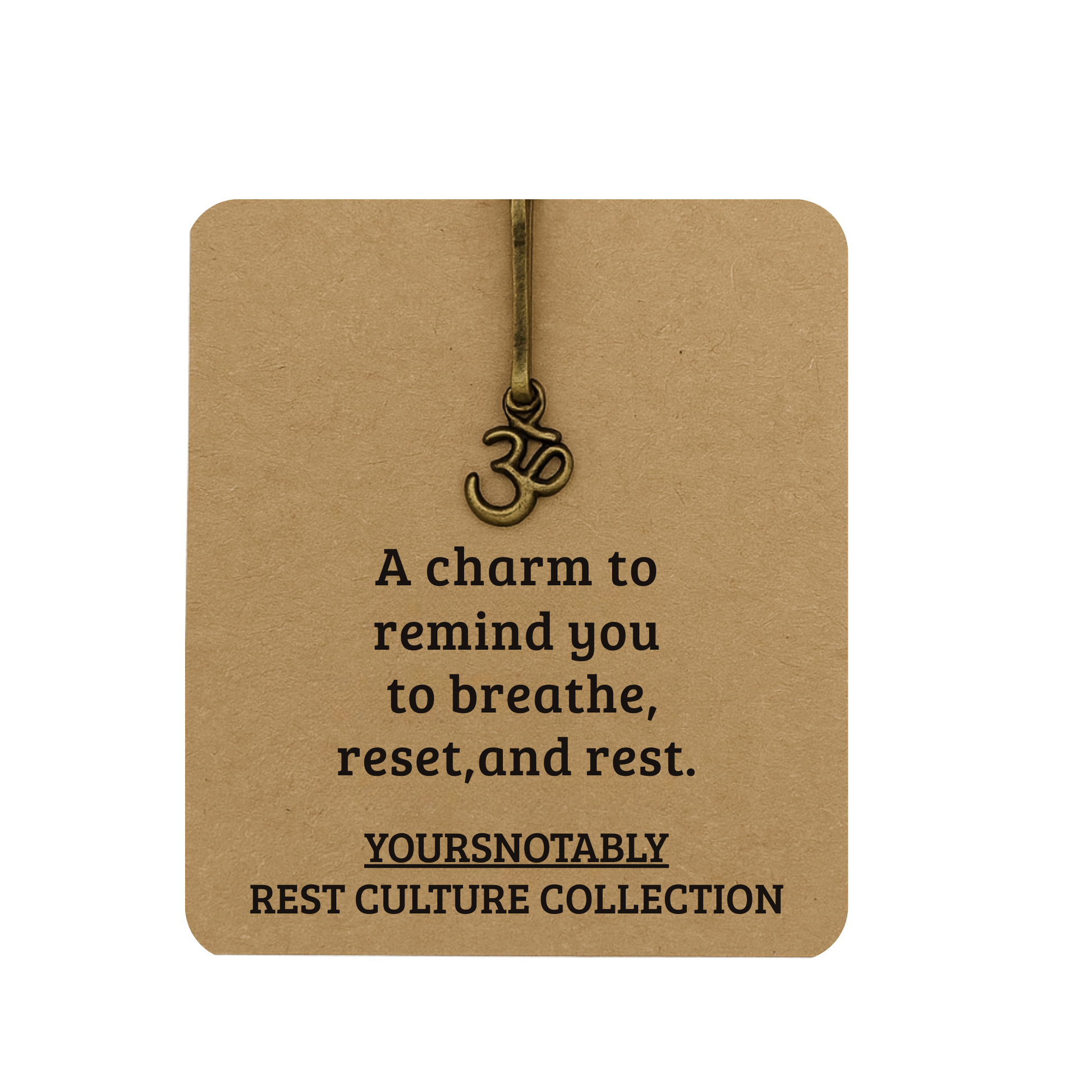 Carry a little calm wherever you go. This antique bronze Ohm charm comes with a sturdy lanyard clasp that clips easily onto your favorite bag, zipper, or pouch. Paired with a kraft note card that reads “A charm to remind you to breathe, reset, and rest,” it’s a small but meaningful token of peace and mindfulness. Perfect as a gift for yoga lovers, meditation fans, or anyone who appreciates moments of quiet strength.